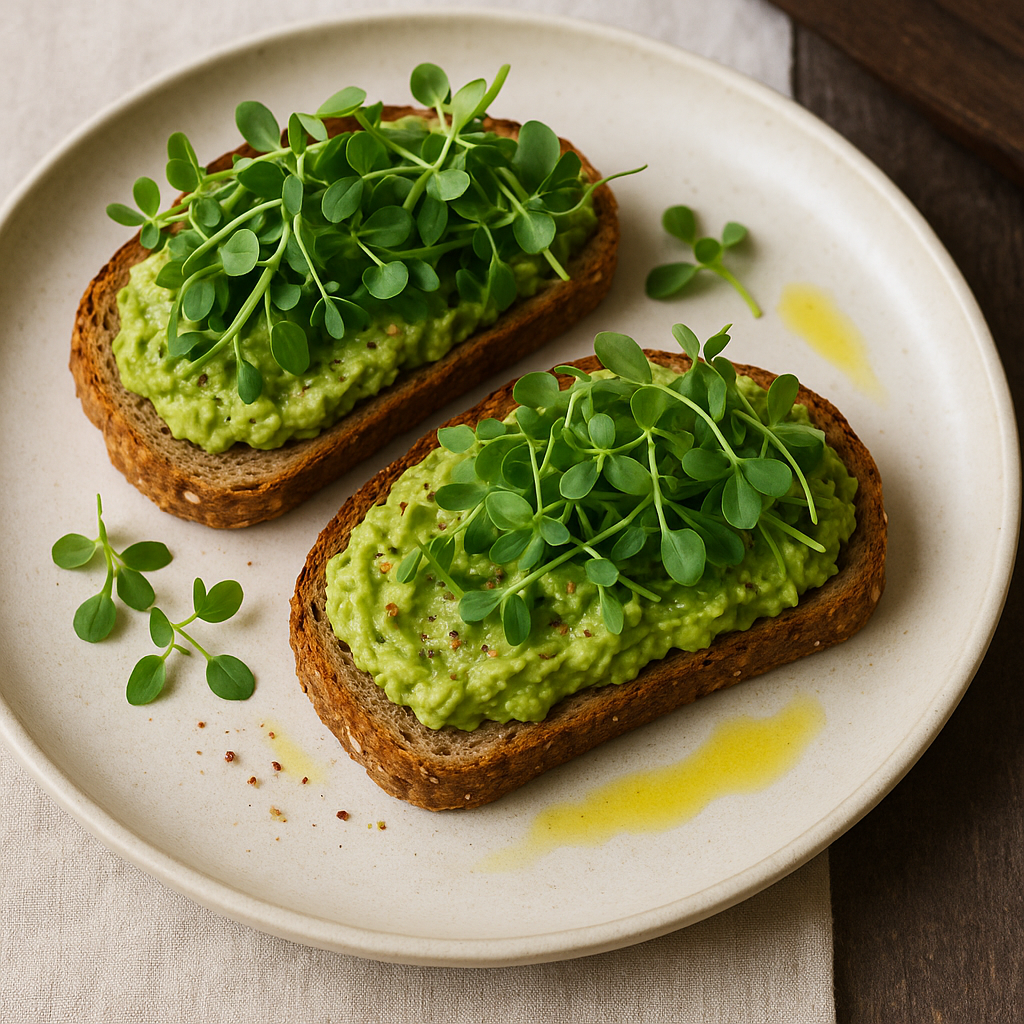 Pea microgreens are best added fresh as a finishing ingredient. This vibrant avocado toast topped with fresh pea microgreens is a quick, nutrient-packed breakfast or snack bursting with flavor and texture.