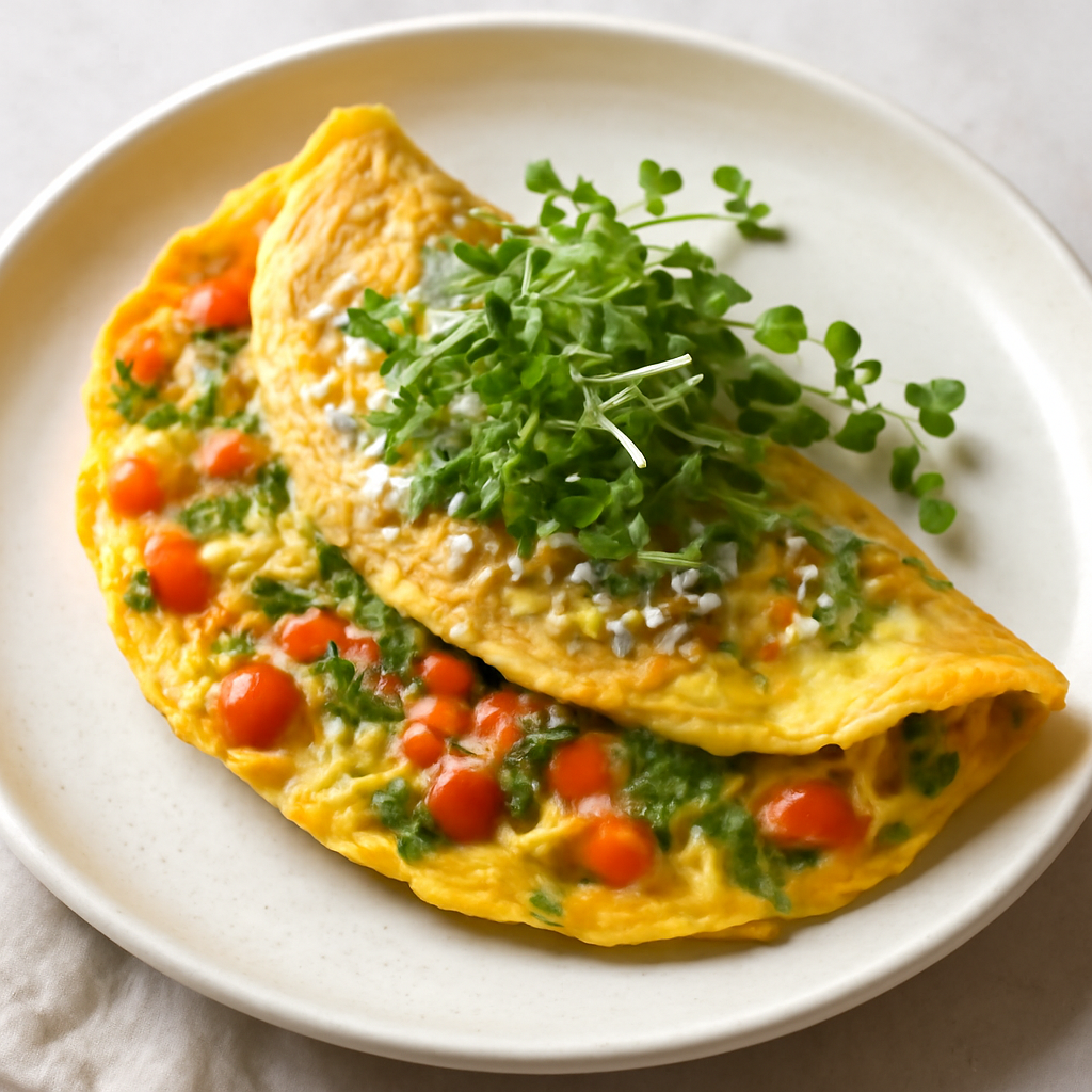 Pour the egg mixture into the skillet, tilting to spread evenly, and cook until the edges set, then gently fold the omelette in half.
